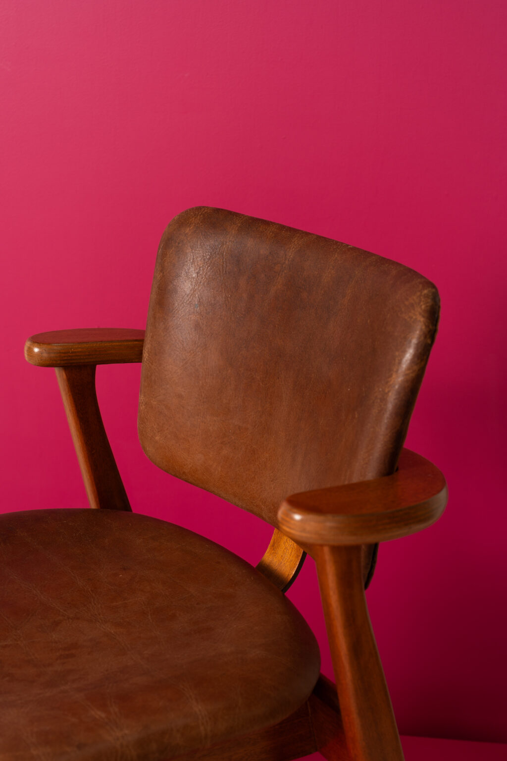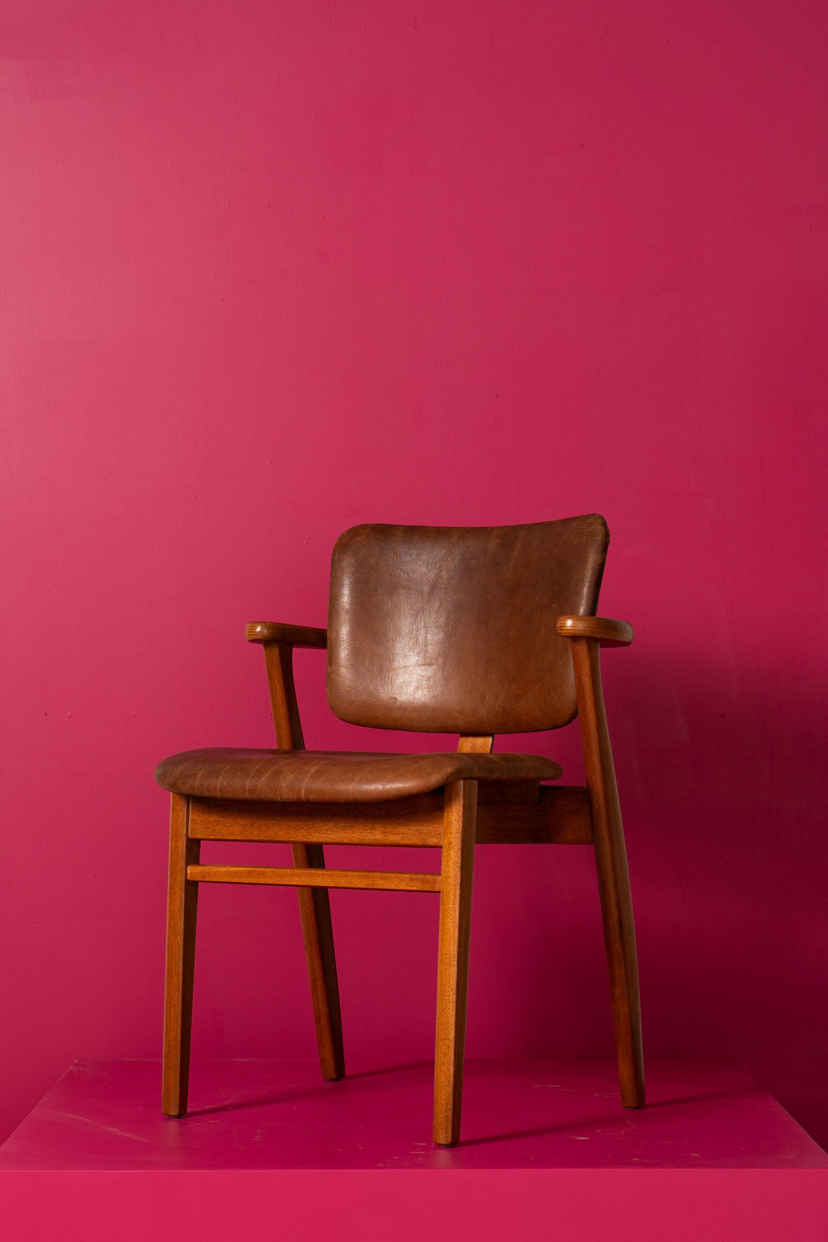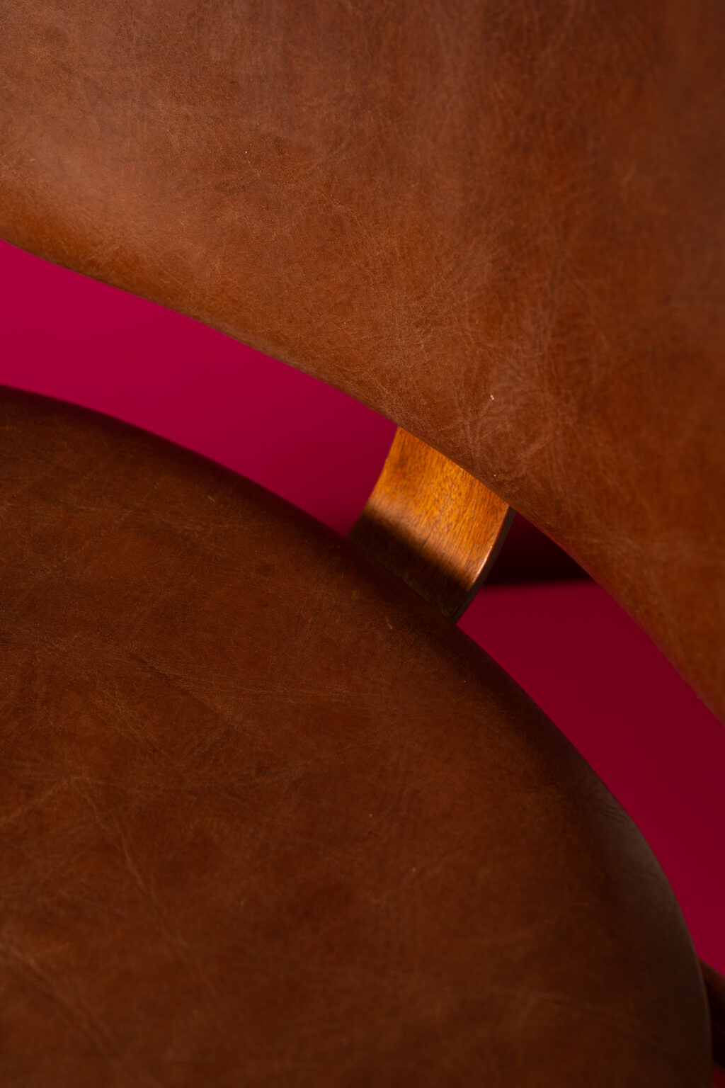 original leather. Tapiovaara designed this chair with the idea of creating a comfortable chair that could be pulled close to a table. Called ’Finnchair’ in the United States, it has won the American Good Design Award and received the Gold Medal at the Milan Triennale in 1951.