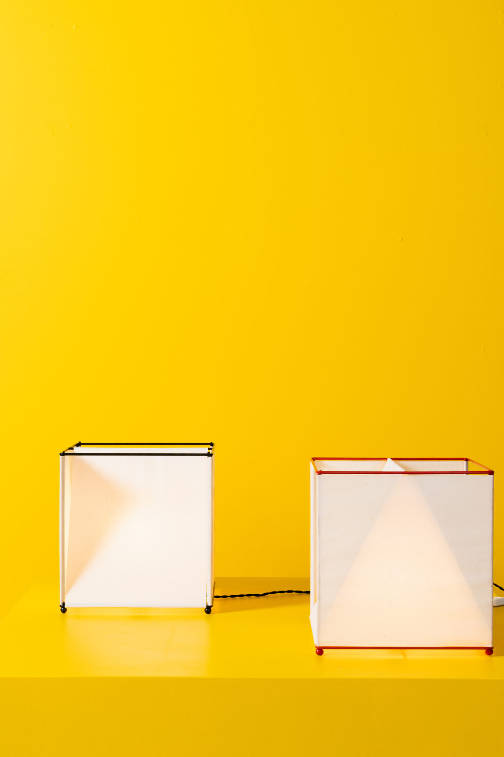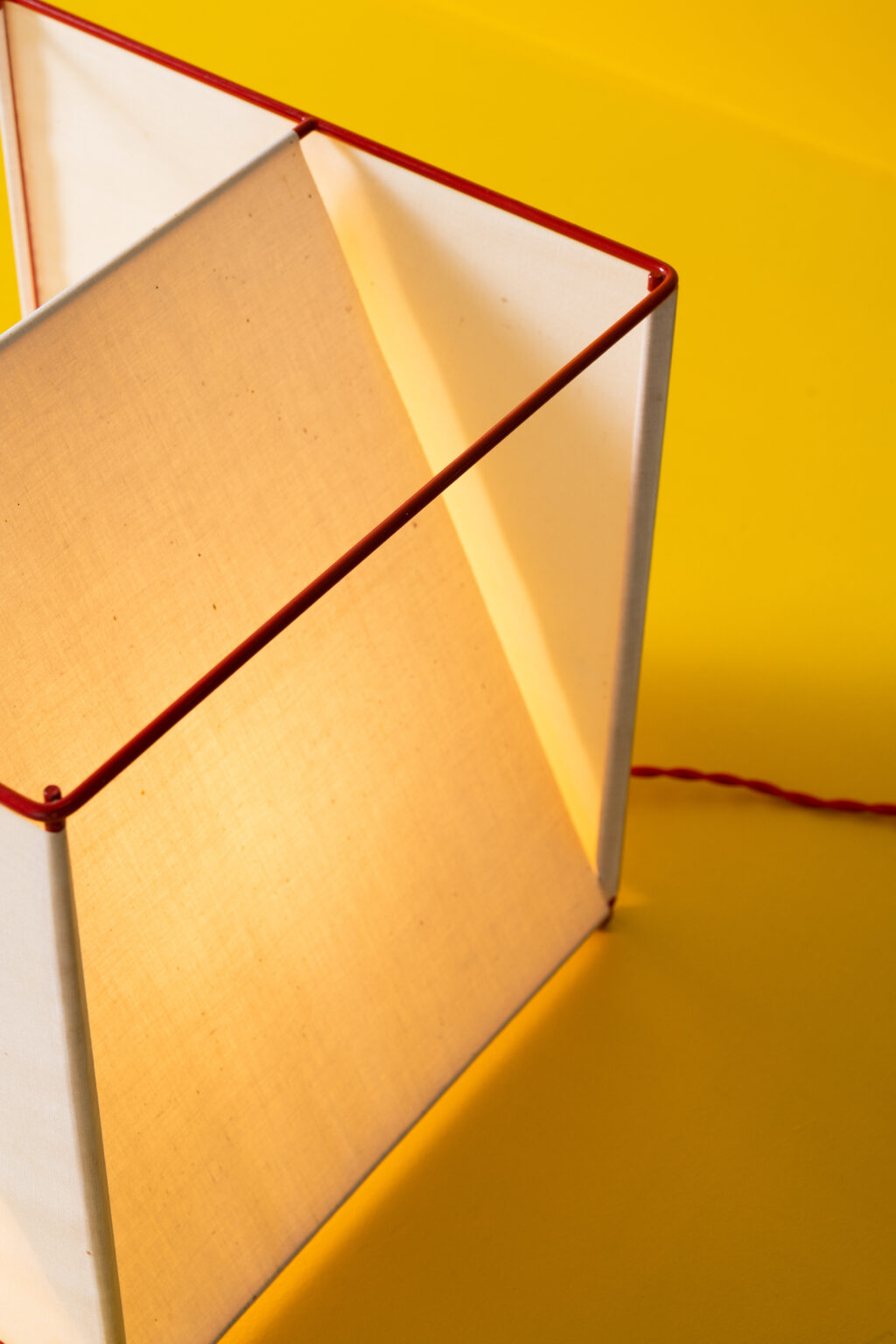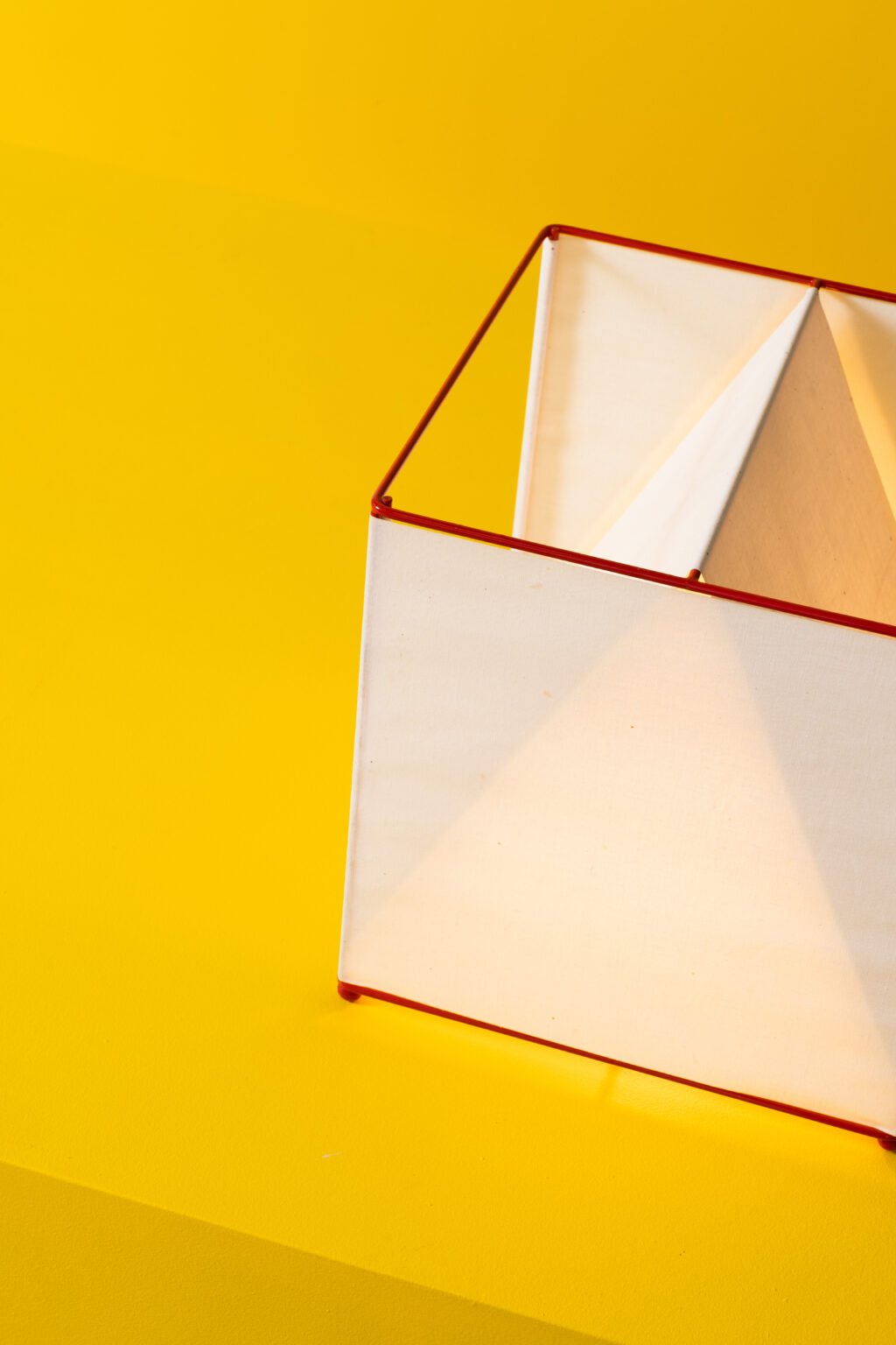 Sculptural table lamp designed by Piero De Longhi for IBIS around 1975. Features a lacquered metal base and an opaline glass diffuser. Presented in two finishes, black and red, and carefully restored by our artisans in Brussels.