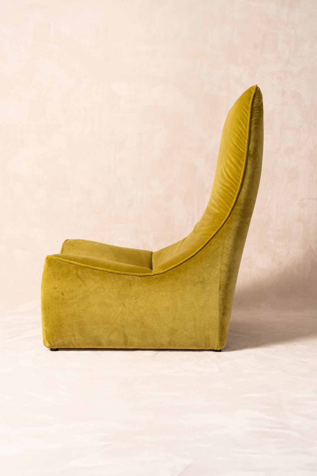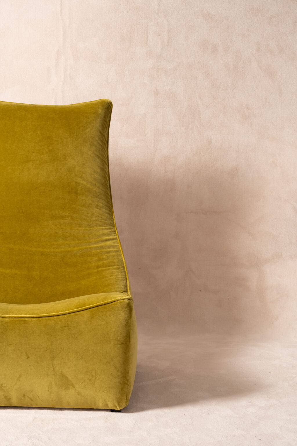 Iconic brutalist armchair designed by Gerard van den Berg for Montis, one of the brand’s most celebrated and sought-after models. Upholstered in luxurious green Kvadrat velvet, it combines sculptural presence with exceptional comfort. A standout piece of 1970s Dutch design, bold yet inviting.