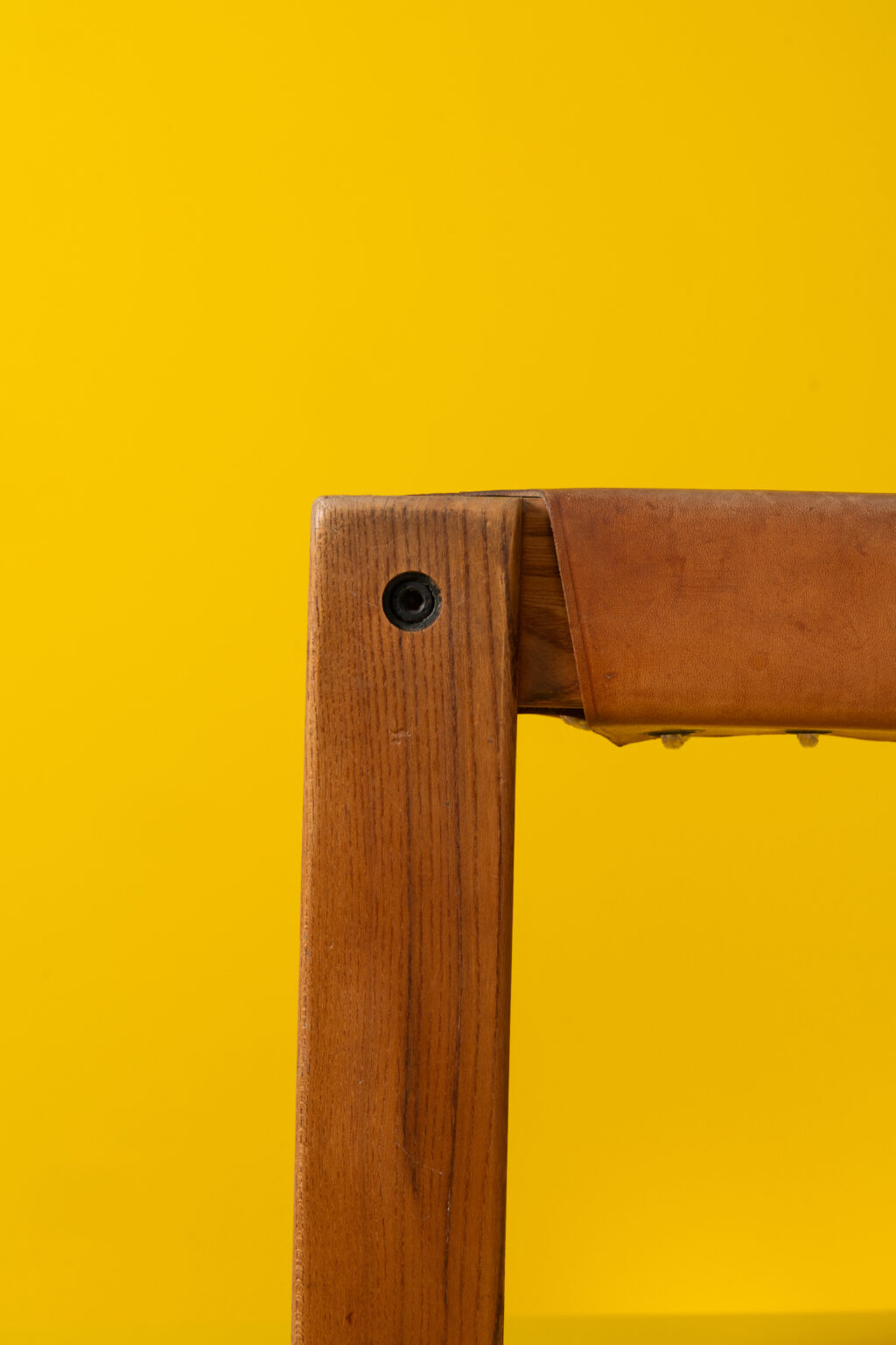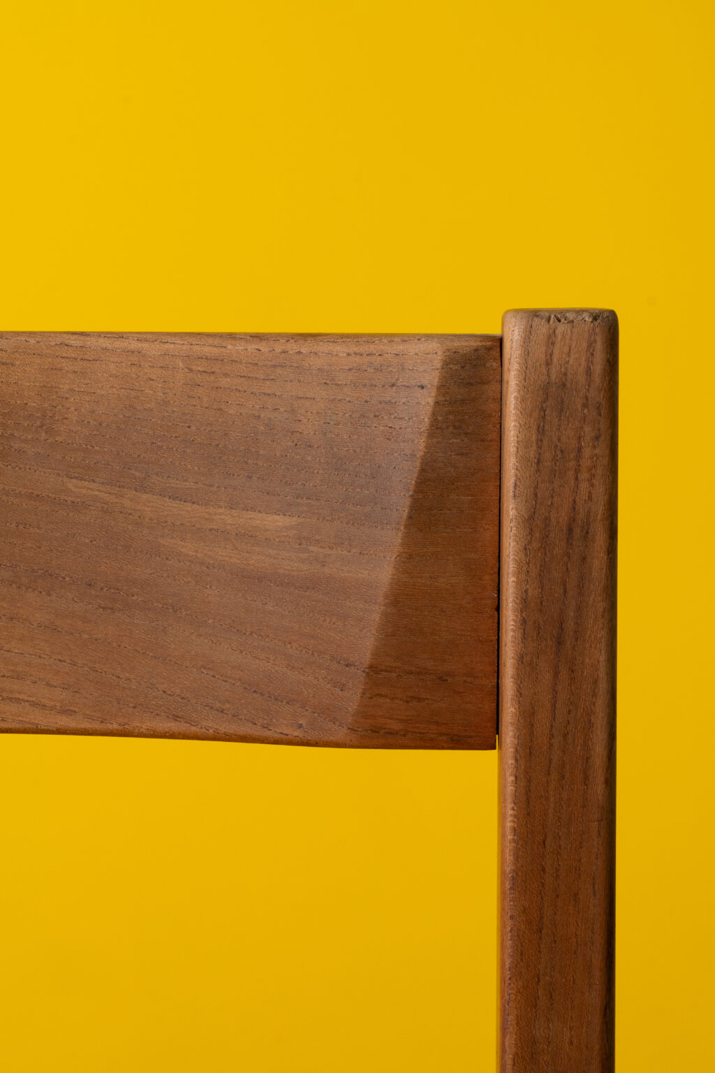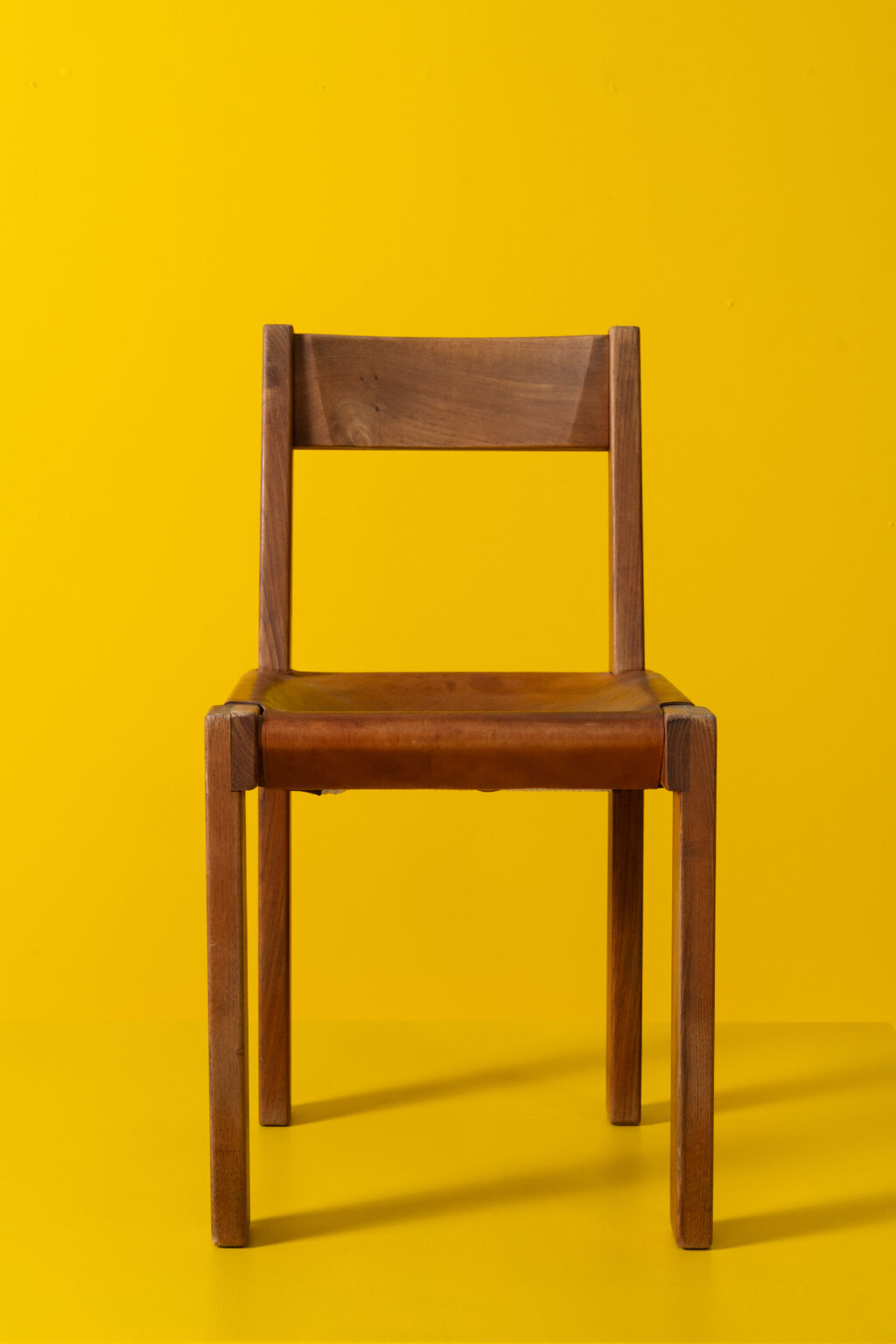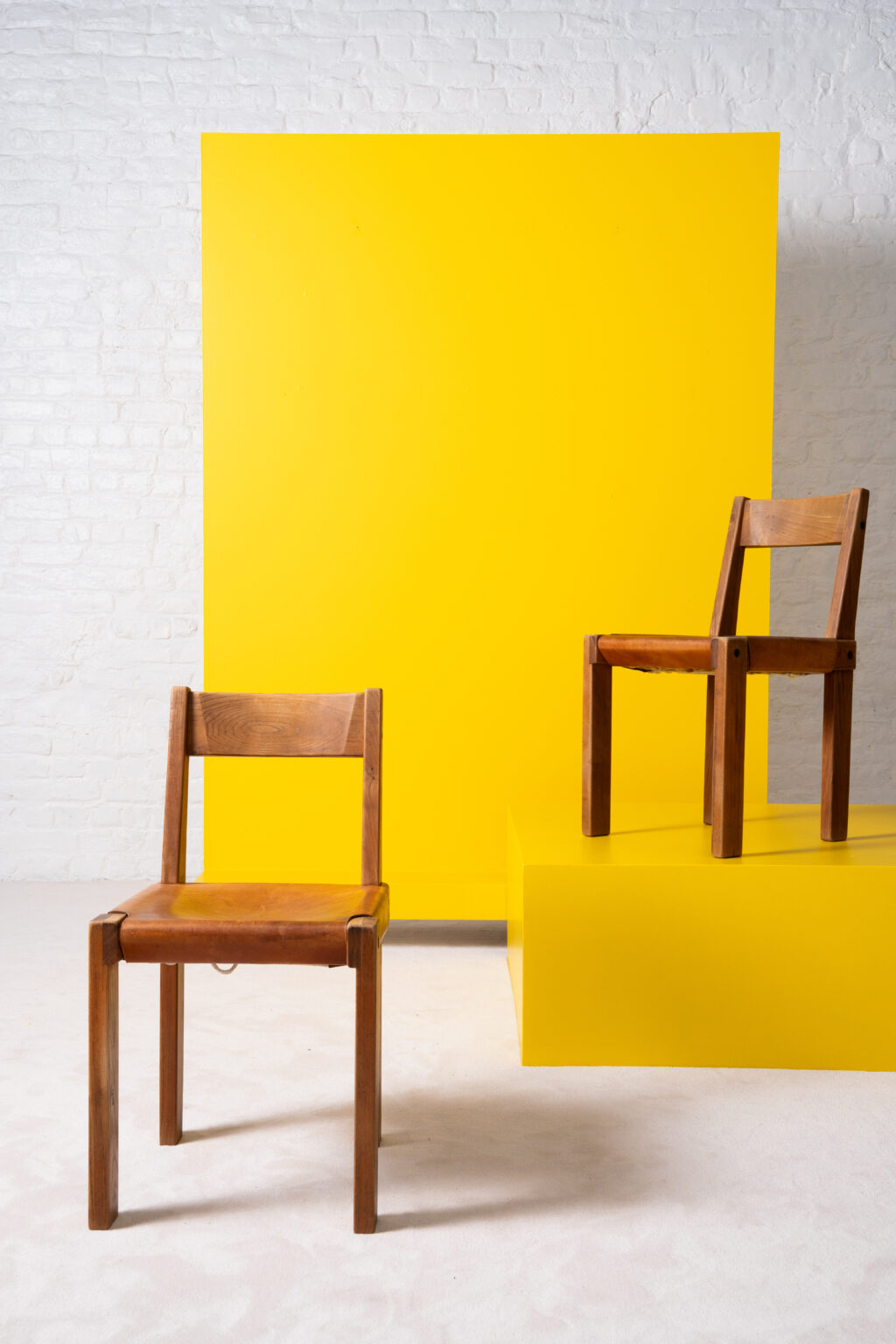 These two solid elm chairs, designed by Pierre Chapo in 1973, are distinguished by their asymmetrical backrests extended from one leg, reminiscent of a scythe handle or the number 7. Handmade by Atelier Chapo Créations, Pierre Chapo is renowned for his solid wood designs featuring clean lines and understated elegance.
