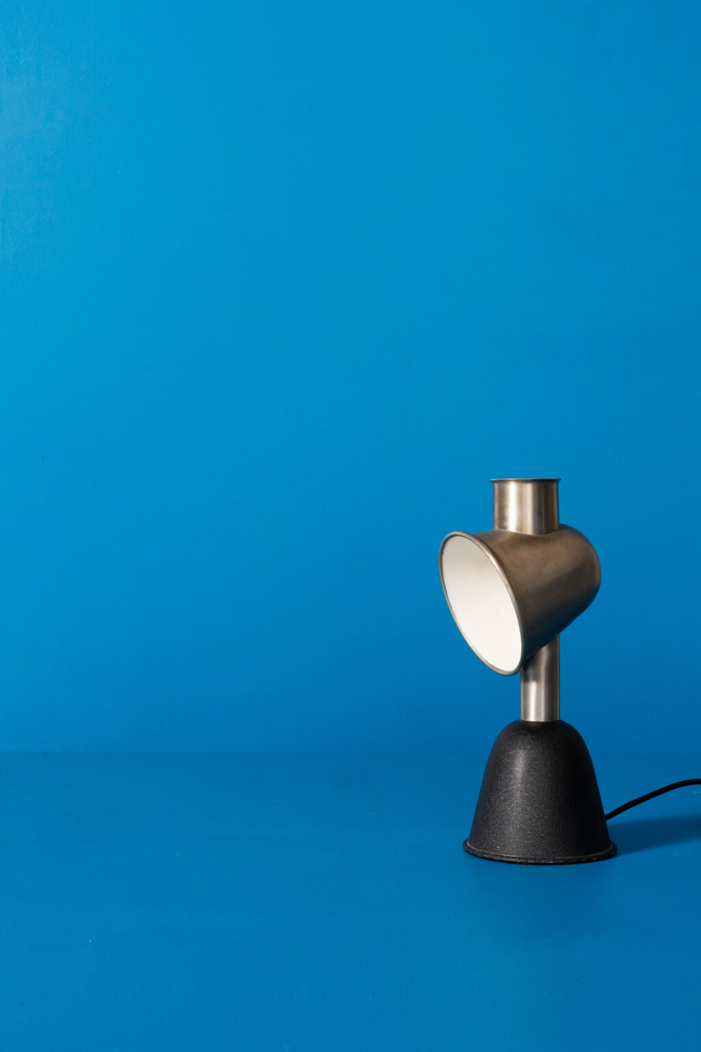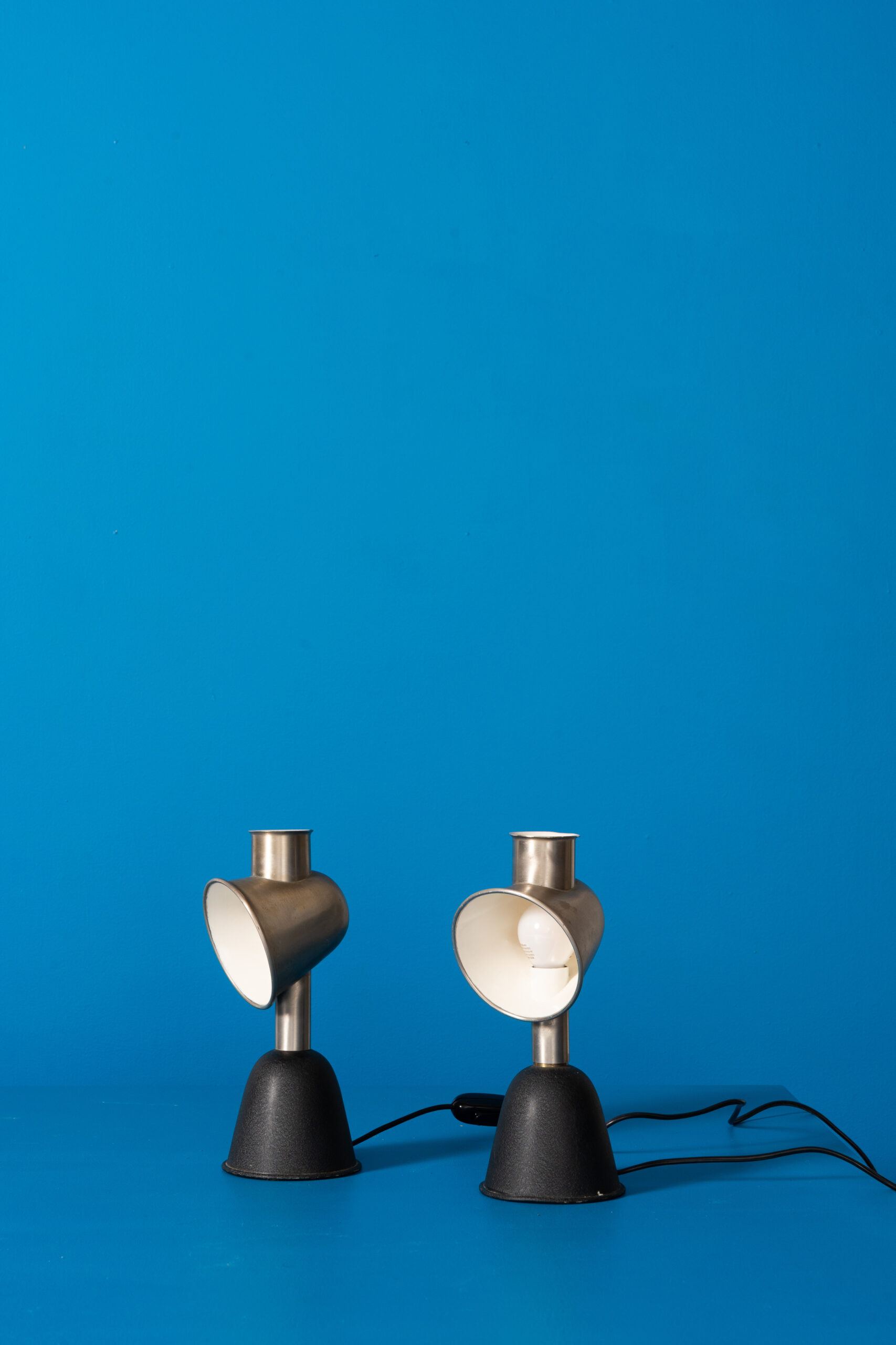 This set of lamps are built around a brushed metal upper shade with a flared profile that directs light forward while softening glare. The inner reflector, finished in white, enhances brightness and creates a clean, diffused glow.