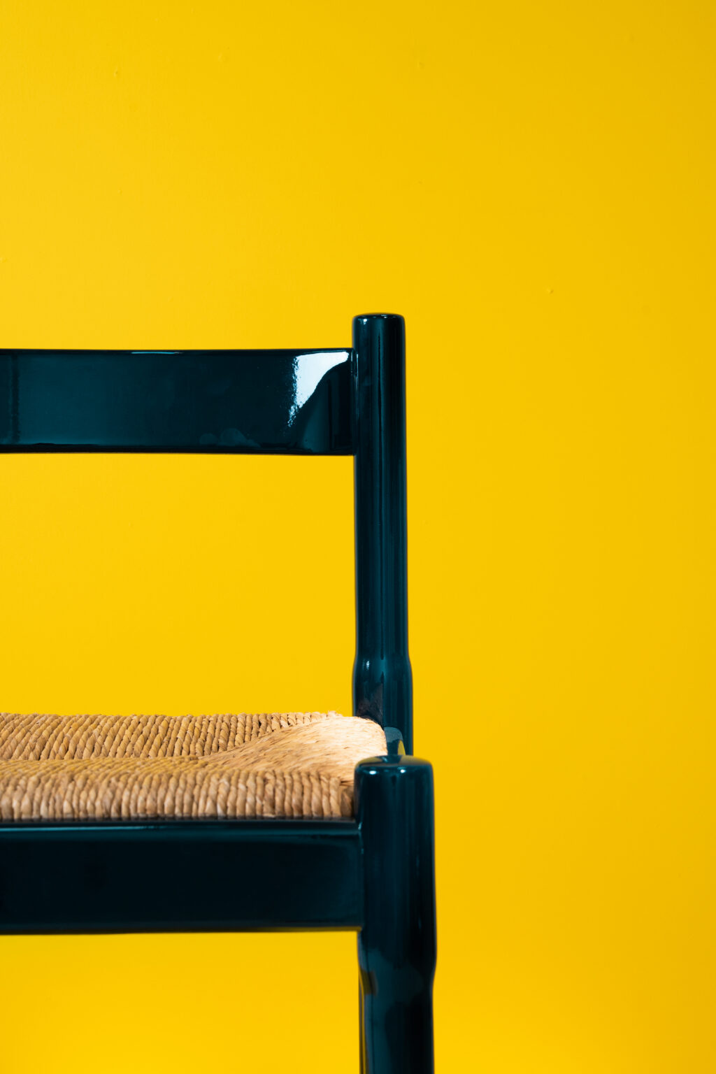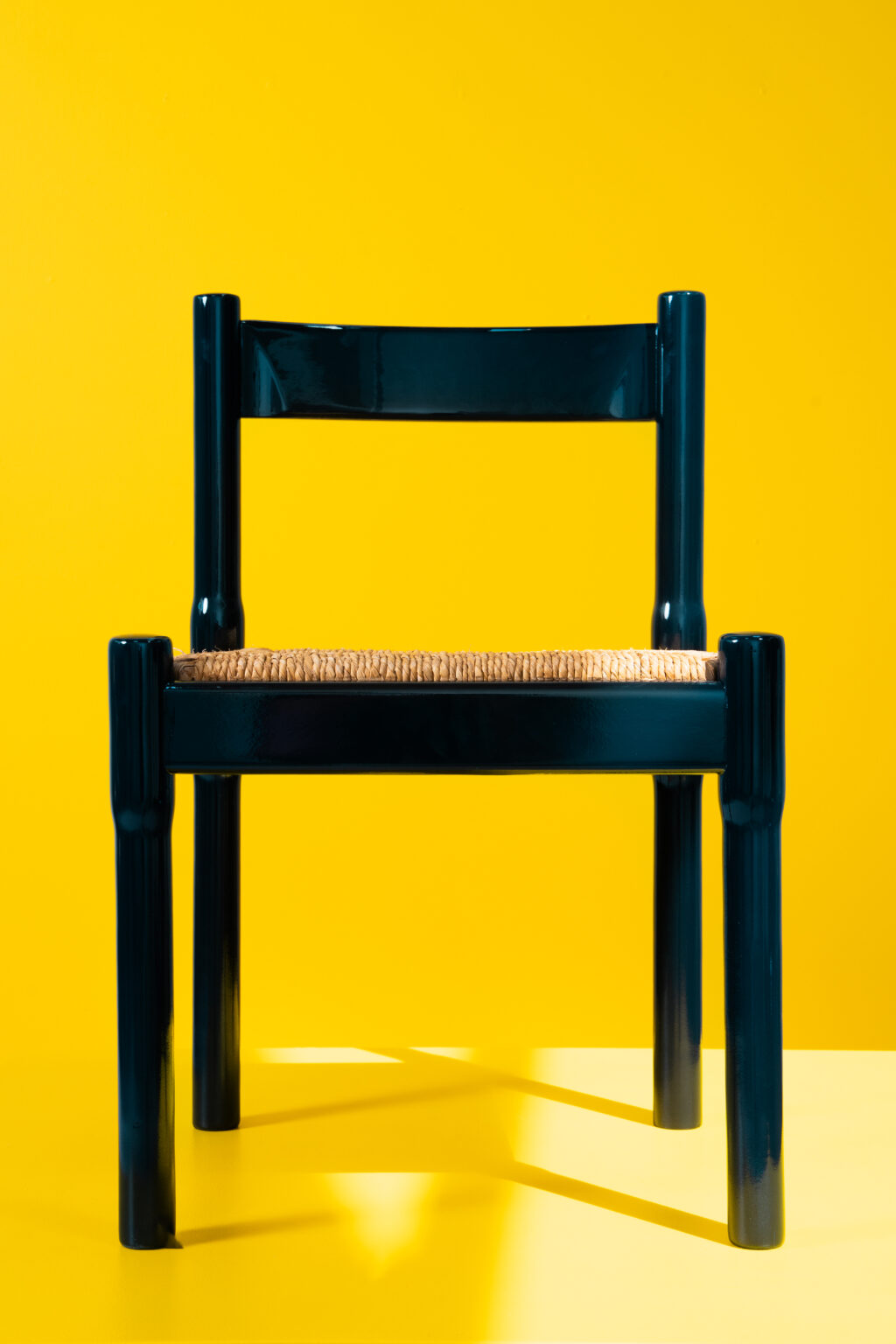 An icon of Italian design, the Carimate chair combines a lacquered solid wood frame with a handwoven straw seat. Designed by Vico Magistretti for Cassina in the 1960s, it stands out for its bold lines and balance between rustic charm and modernist clarity. This set has been carefully refinished in dark blue lacquer by our artisans in Brussels.
