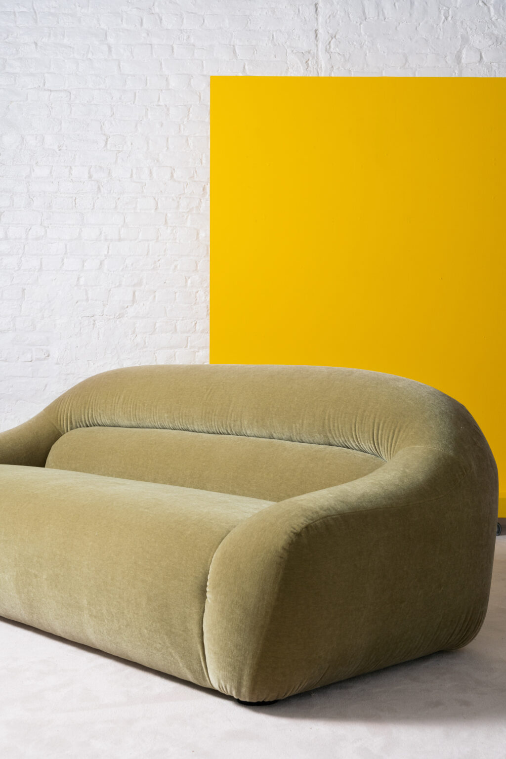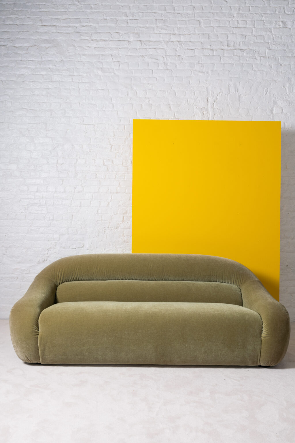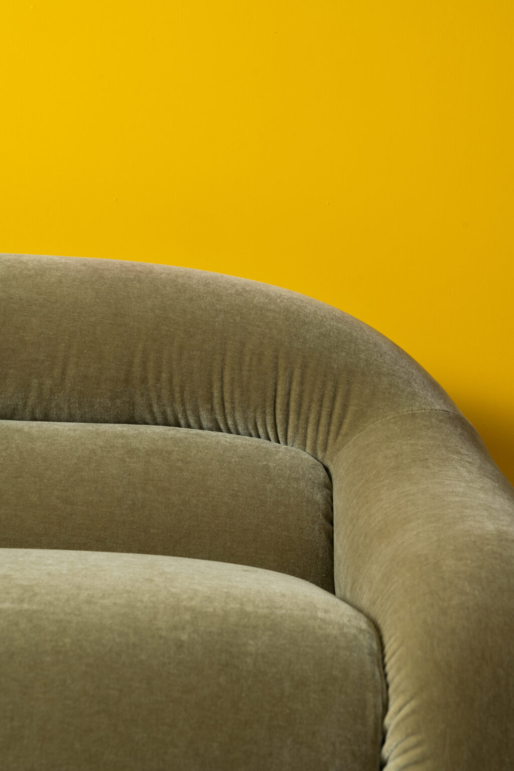 A velvet “Capriccio” sofa by George Bighinello for Eurosalotto – circa 1970. Recently reupholstered in mohair fabric.