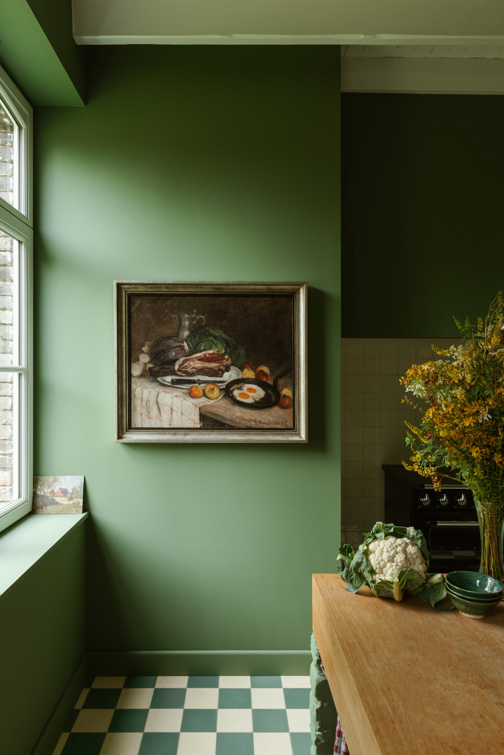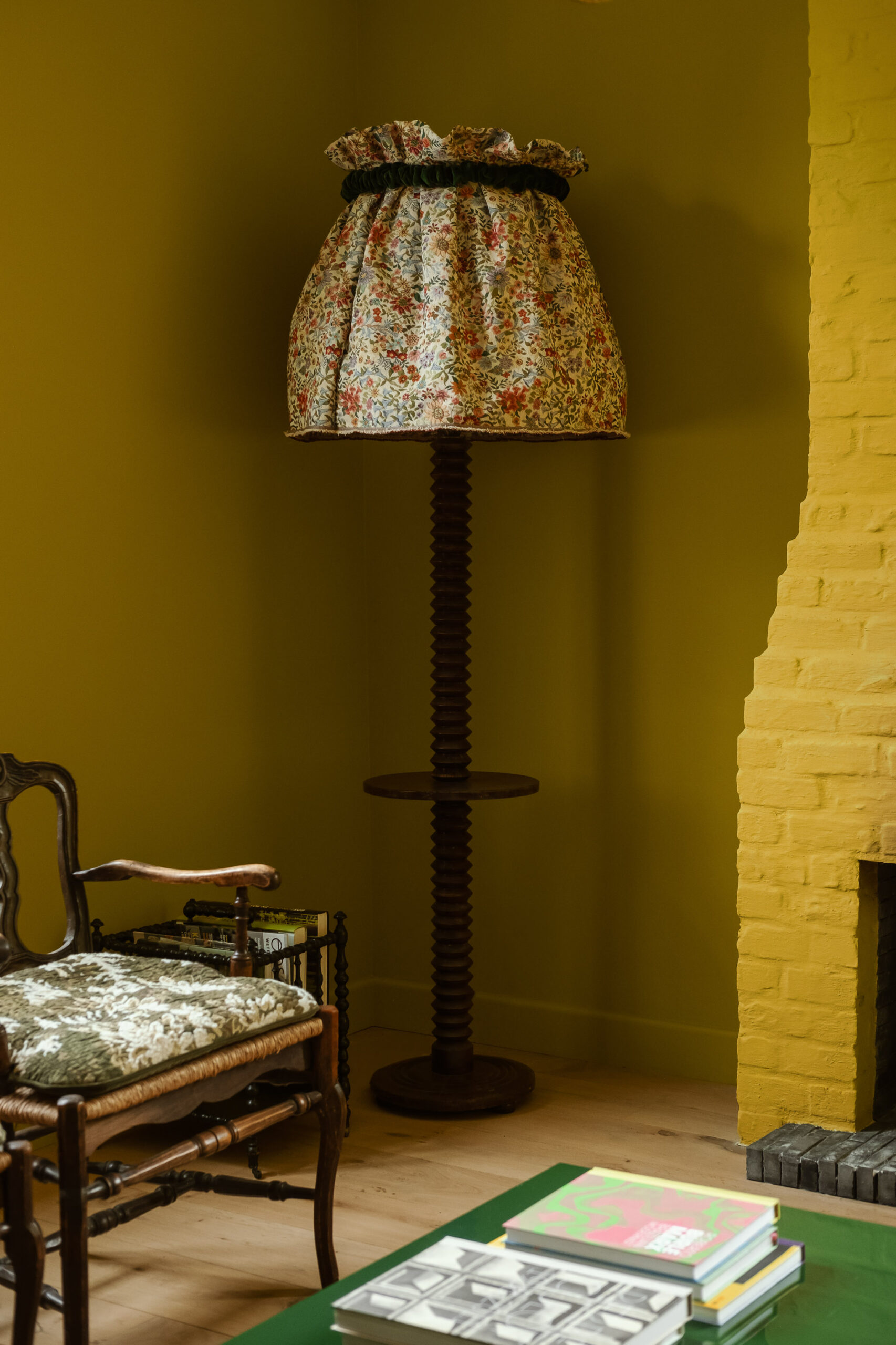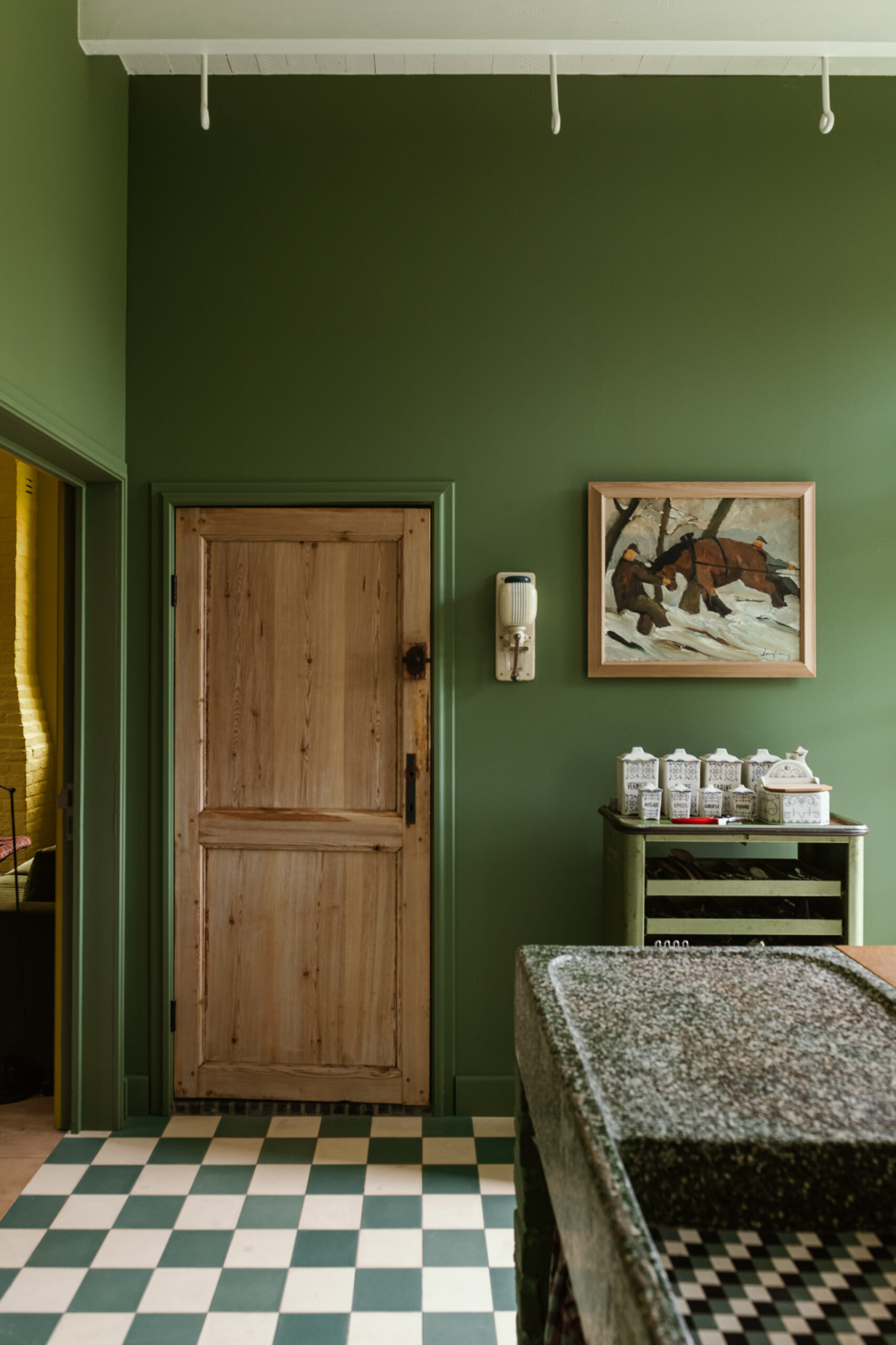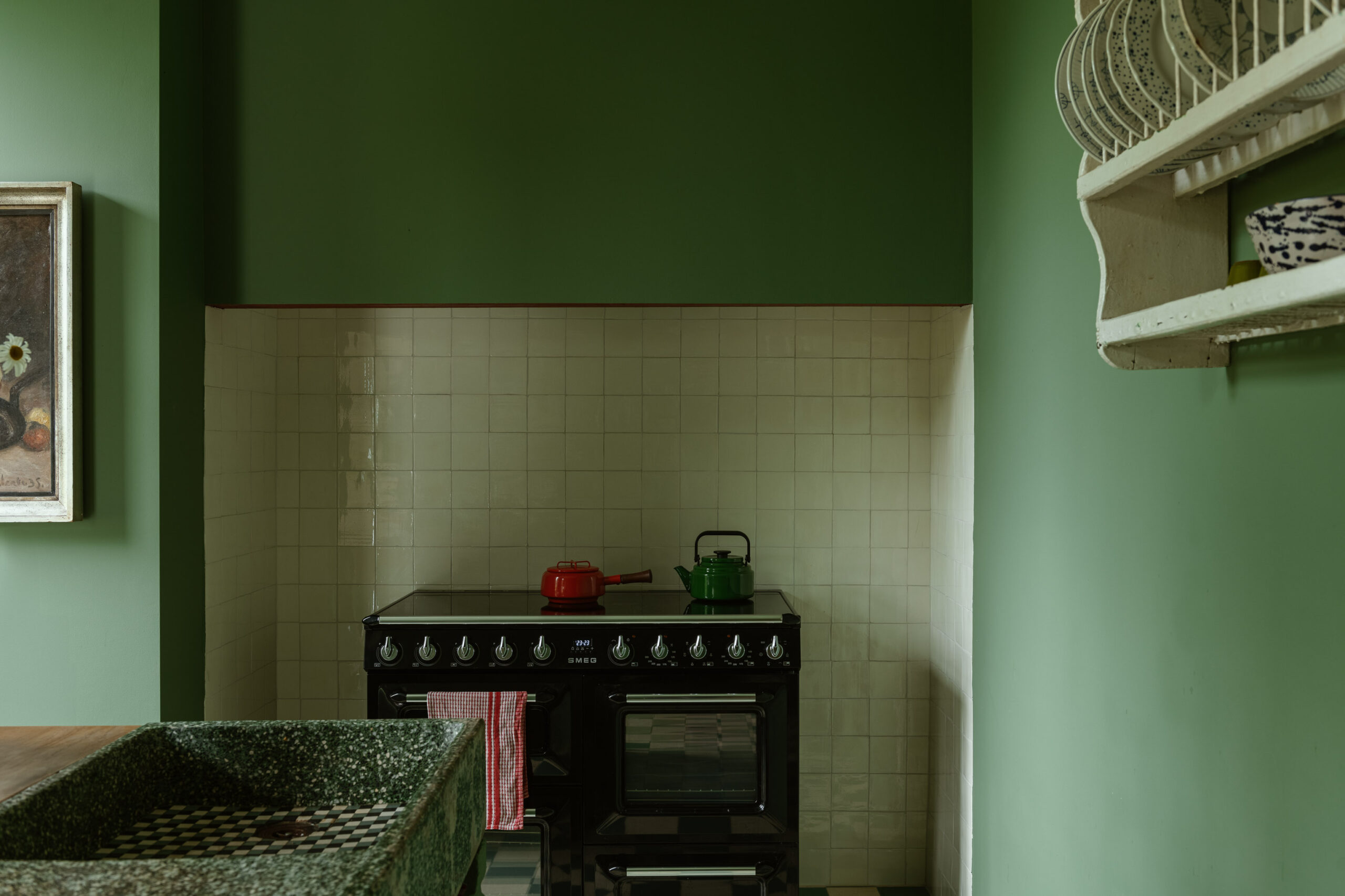 The approach extended beyond preservation, curating the spatial flow and atmosphere through careful details. The original tiles, a green sink inherited from the owner’s grandmother, a floral fabric sourced from an Austrian market, and a bright red Mezzadro stool by Castiglioni serve as anchor points in a colorful composition that bridges the home’s history with a fresh, lived-in character.