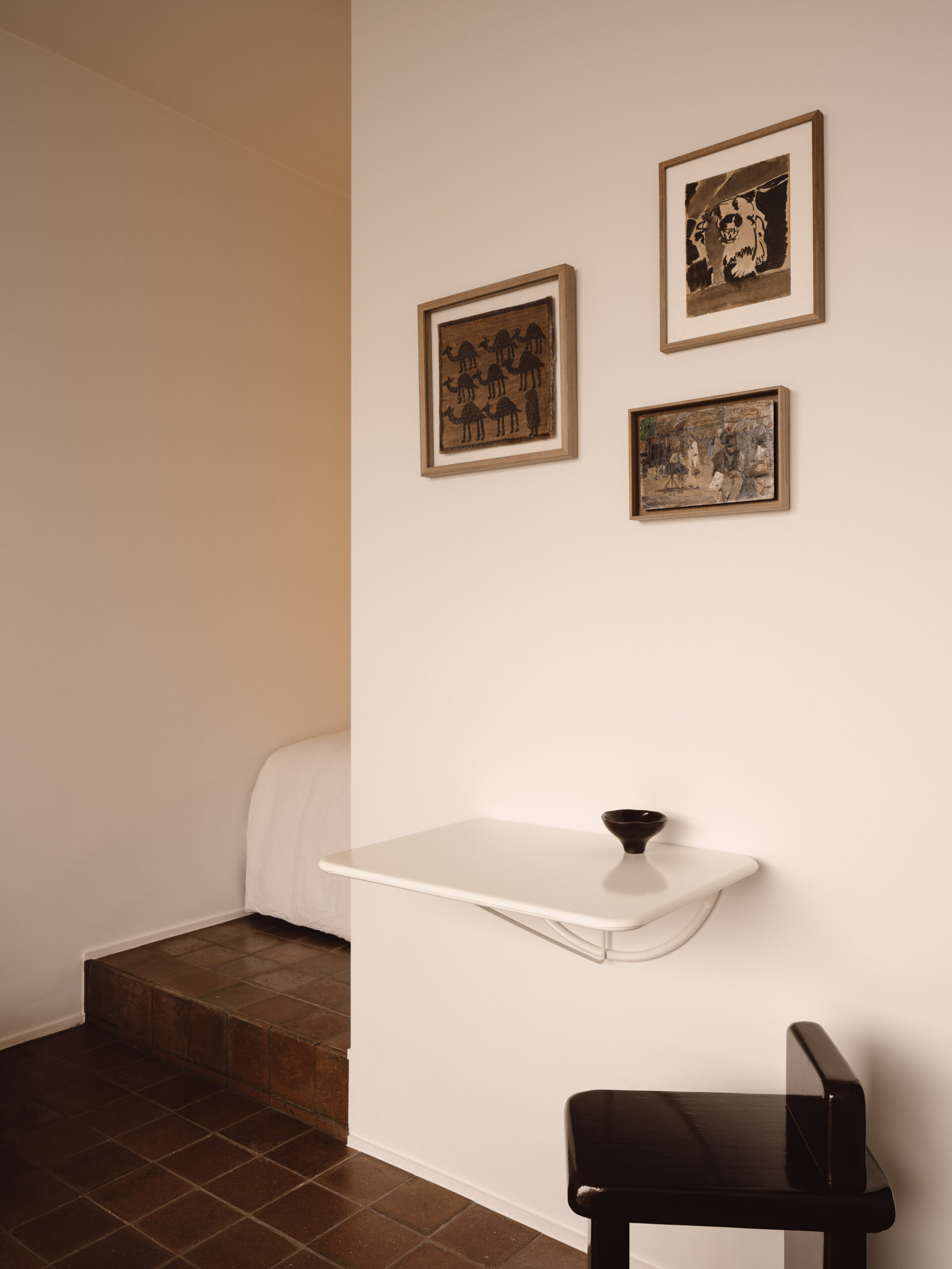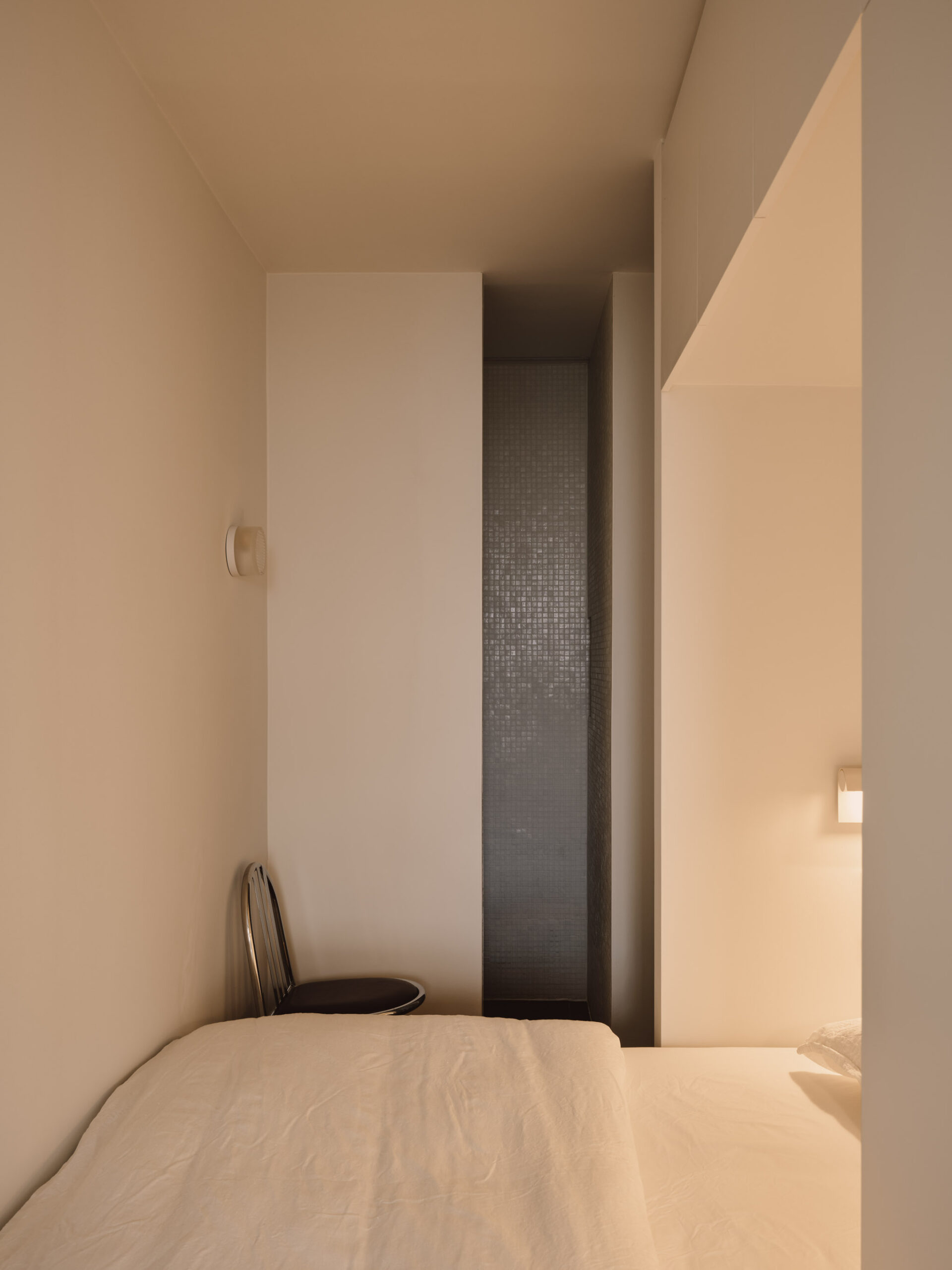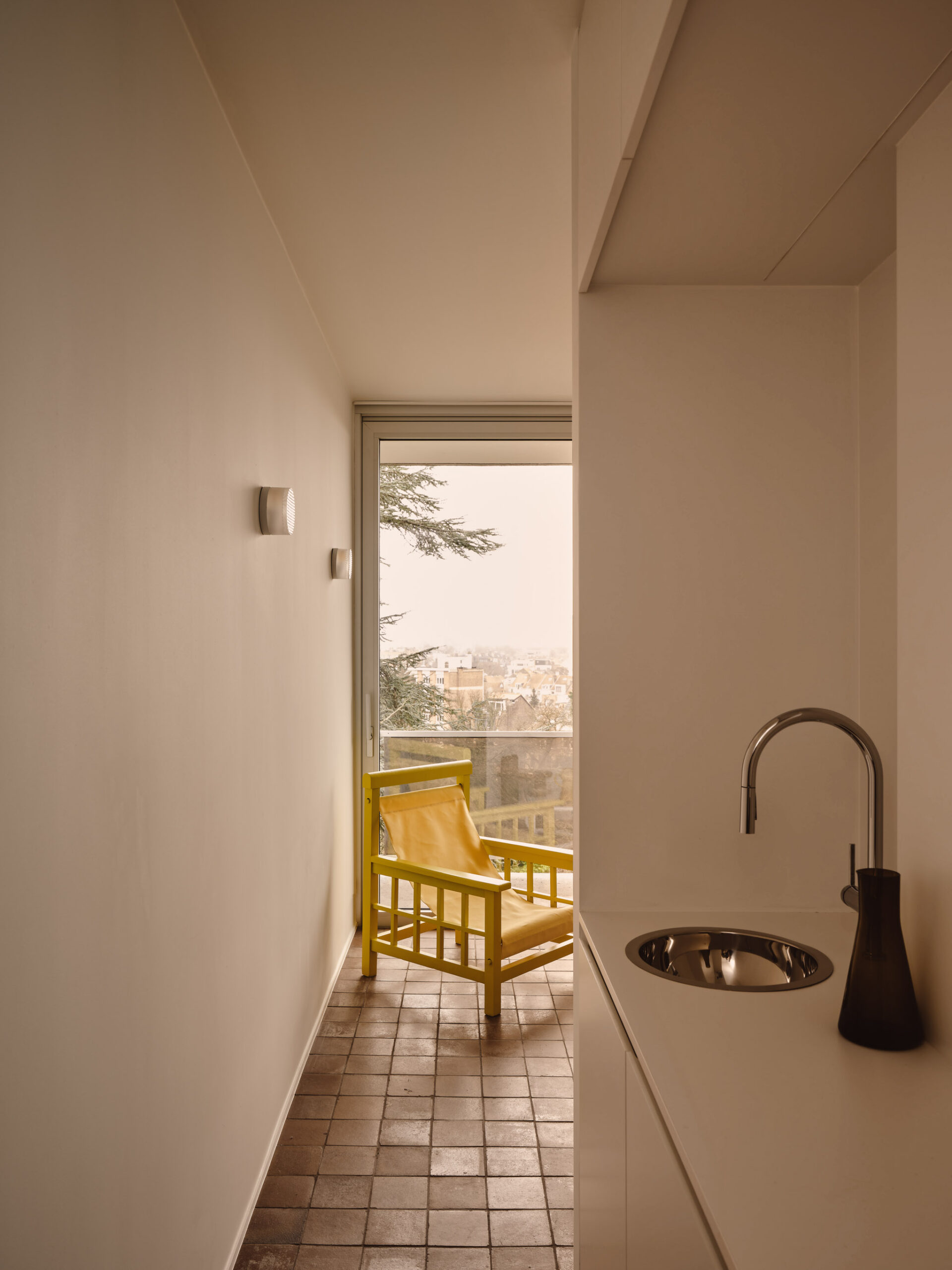 The challenge lay in meeting the needs of a compact domestic program while preserving the architectural heritage of the building. We therefore carried out meticulous research into 1970s materials and had the opportunity to reclaim brown-toned tiles, which we carefully reinstated. The choice of mosaics came just as naturally, ensuring coherence with the existing. At this intimate scale, our aim was to prioritize authenticity and reuse.