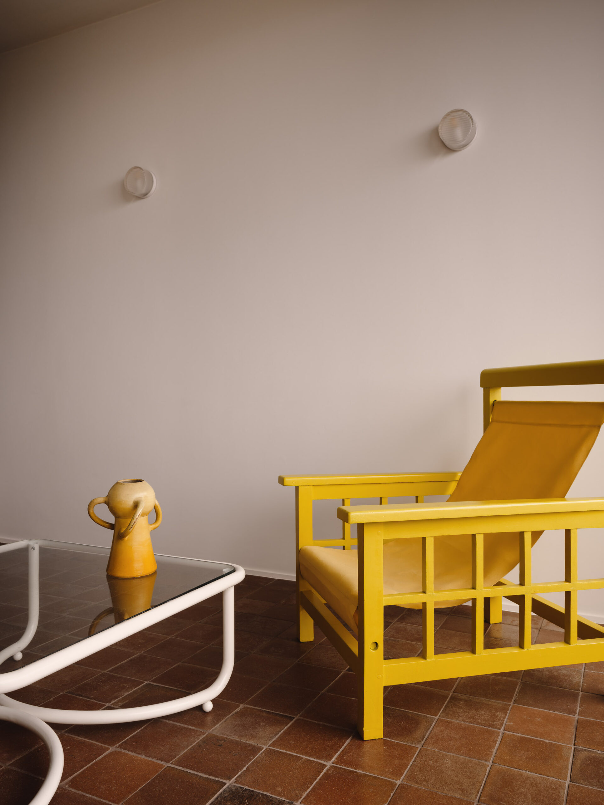 The furniture, selected with the same level of care, consists of pieces with a strong character, in dialogue with the spirit and era of the building - such as the iconic deckchair by the renowned architect of the Villa Cavrois, Robert Mallet-Stevens.